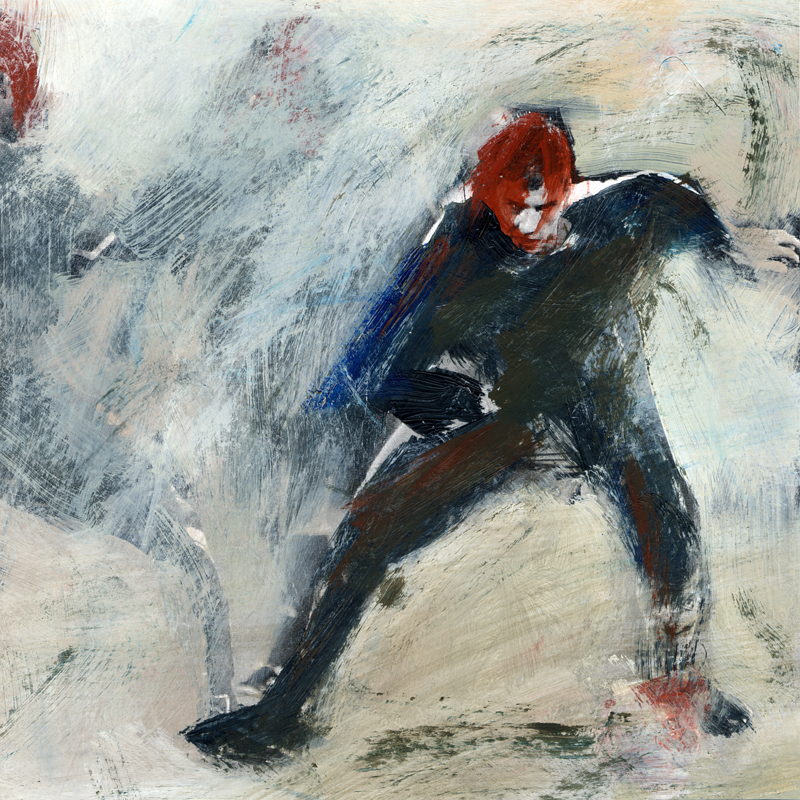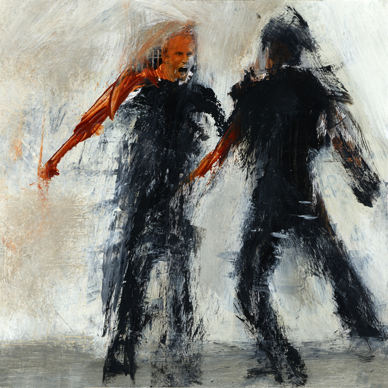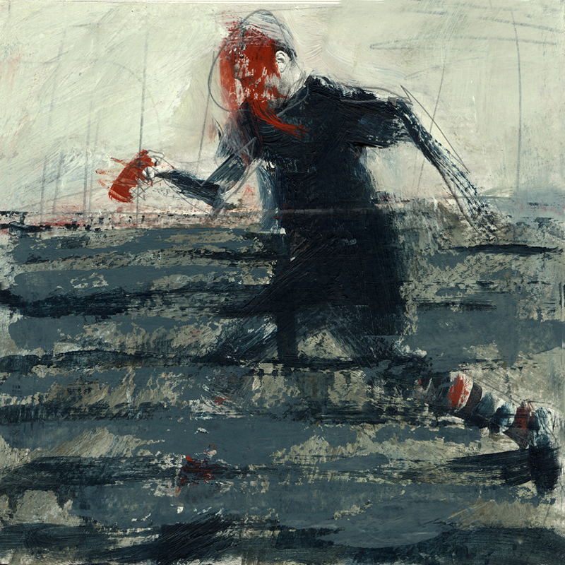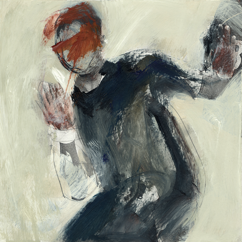 Serie ‚Menschlich bewegt‘ 01 | 2008/09 | 20 x 20 cm | Mischtechnik auf Laserdruck