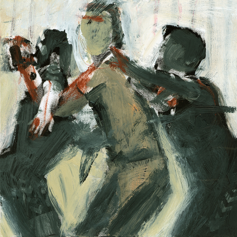 Serie 'Menschlich bewegt' 02 | 2008/09 | 20 x 20 cm | Mischtechnik auf Laserdruck