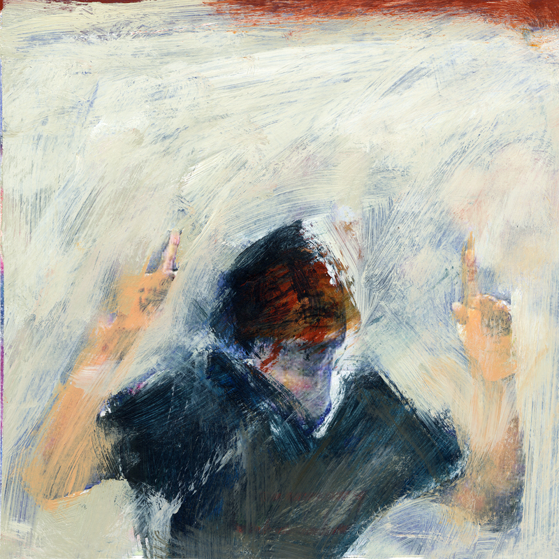 Serie 'Menschlich bewegt' 01 | 2008/09 | 20 x 20 cm | Mischtechnik auf Laserdruck