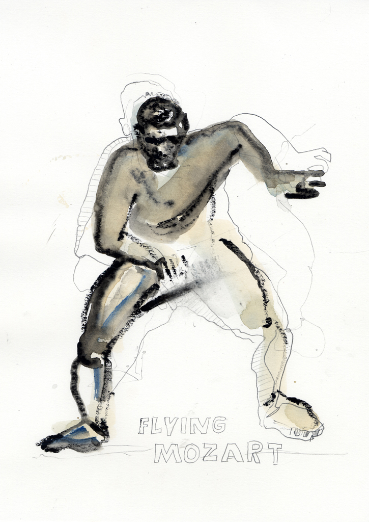 Flying Mozart | 2012 | Mischtechnik auf Papier | ca. 28 x 20 cm